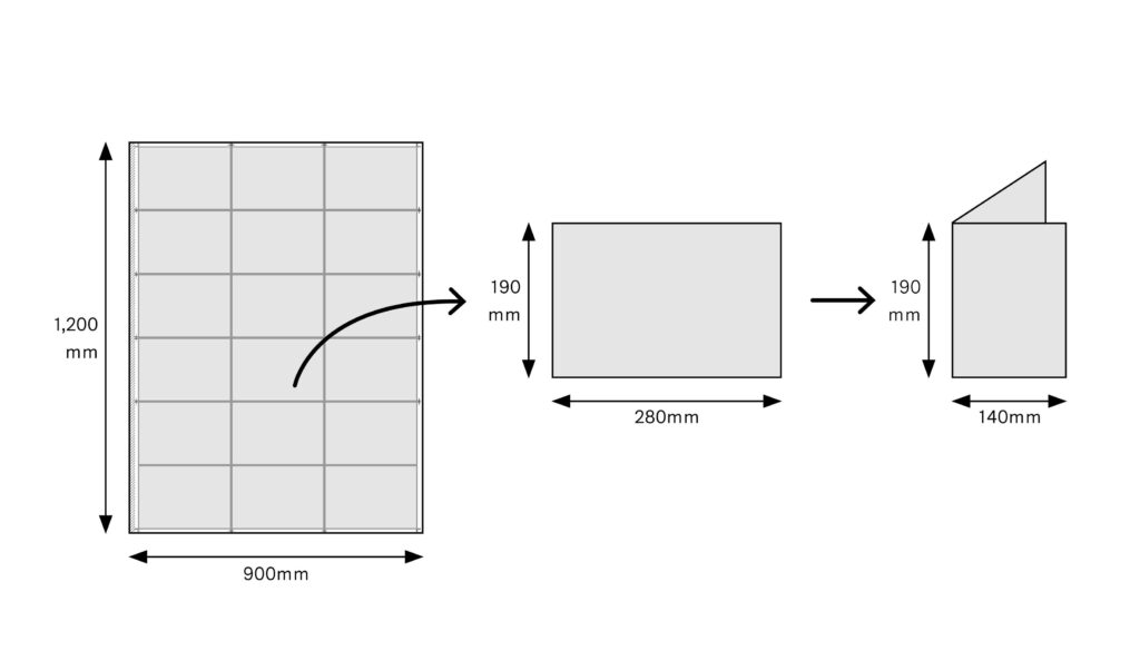 M 紙、インクと決まってきましたが、今回は印刷用紙のサイズから歩留まりの良い仕上がりサイズを計算して、ロスを少なくできないかなと考えていているんですよね。