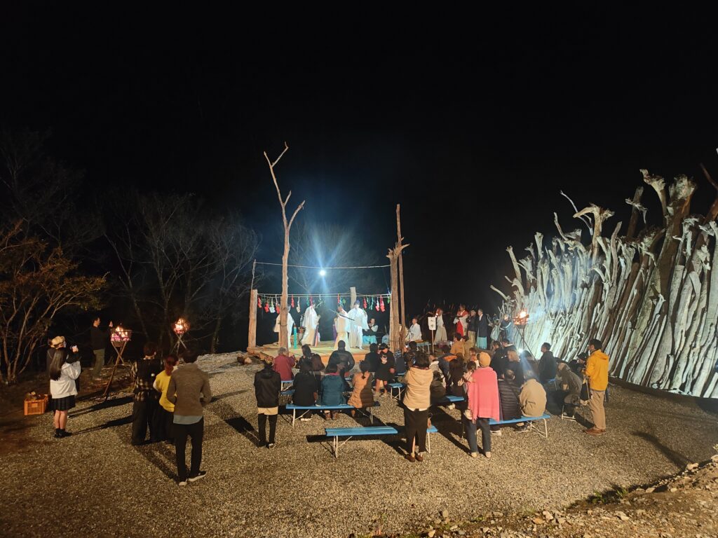椎葉村の人たちはずっと変わらず山の生活を続けている。都市で私たちが生活するよりはるか昔から、山の生活はあった。きっとその矛盾はどこかで感じていたんだろうと思う。そこに思いのある人たちが山に招かれてやってきたのが、この「山は招く芸術祭」であったと思う。いや、ちょっと大げさに言い過ぎたかもしれない。しかし椎葉村の山の生活のアウトプットとして芸術祭ができたことはとても幸せだった。この文章を読んでくれた方で気になる方が入れば、椎葉村に行ってみてください。流木の舞台の周りには今日も小崎の誰かがいます。私が書いたこの文章よりも魅力的に話をしてくれると思います。