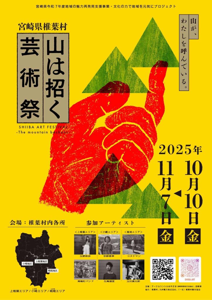 2025年10月から11月にかけて、宮崎県椎葉村で「山は招く芸術祭」を行った。椎葉村は日本三大秘境の一つと呼ばれているが、他の2つと比べると交通アクセスが悪い。2020年の台風10号は村内の山肌を大きくえぐる土砂崩れが発生した。その影響のため、いまだ通行止めの箇所が多々あり、復旧の目処が立たないところもある。そのため最寄りの駅からのバスもなく、当然電車もない。まさに秘境だ。